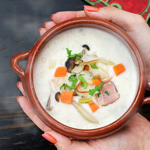 香味野菜の豊かな風味をベースに、あさりとベーコンのエキスで濃厚でクリーミーに仕上げました。